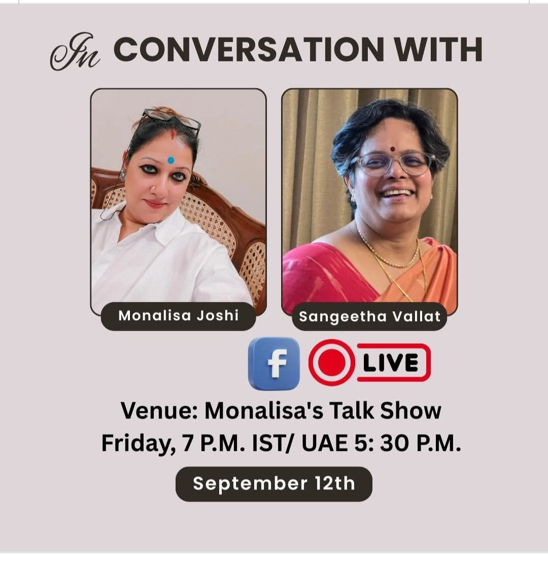 Screenshot 20250917 112418 Facebook Screenshot 20250917 091325 Facebook SPEAKER AT TELL ME YOUR STORY (TMYS)PLATFORM LITMART PITCH EVENT AT BLF 2023. PANEL DISCUSSION AT TMYS- A CREATIVE WRITING PLATFORM A MOBILE APP STORY WRITING COMPETITION. CERTIFICATE BY PENMANCY, A FB WRITING COMMUNITY. ANOTHER STORY IN AN ANTHOLOGY CURATED BY THE SINGAPORE BASED AUTHOR, JAYANTHI SANKAR ANNOUNCEMENT OF MY STORY IN A ANTHOLOGY INVITE BY GOETHE INSTITUE, CHENNAI VIRTUAL BOOK LAUNCH EVENT. MY SECOND SHORT STORY TO BE PUBLISHED IN AN ANTHOLOGY. MY FIRST STORY TO BE PUBLISHED IN AN ANTHOLOGY WRITING WORKSHOP INVITE- MY SESSION - MEMOIR- PITCH, POLISH AND PROMOTE. JOY OF LIBRARY- INVITE PLATFORM TICKET BOOK LAUNCH INVITE Please leave this field empty Oh hi there 👋Subscribe to get notified. Check your inbox or spam folder to confirm your subscription.